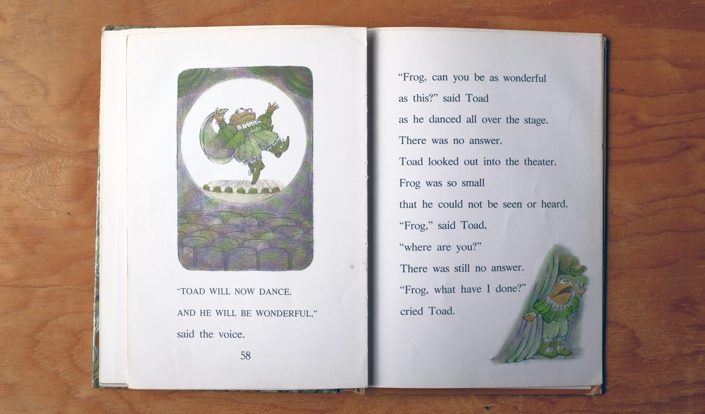 MAC: It’s a surprising turn: Frog has been shrunk and disappeared. But the story is not about a terrible thing happening to Frog. A terrible thing has happened to Toad.